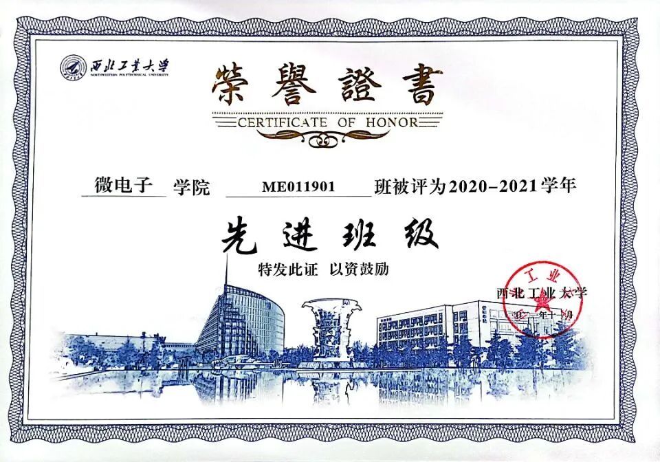 先进班级荣誉证书