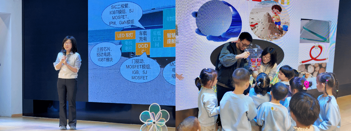 随后,汪瑛老师给孩子们进行科普讲座,让孩子们在欢声笑语中,完成了对微电子世界的第一次奇妙探索。汪瑛老师从生活中的必需品入手,将芯片比作如同水、空气一般重要的存在,以此来引入芯片。接着,汪瑛老师将芯片拟人化,以浅显易懂的方式介绍了芯片。在讲解芯片的作用时,巧妙地把芯片与深受孩子们喜爱的漫画结合在了一起,讲解了芯片的记忆、处理等功能以及在现实生活中的应用。除此之外,汪瑛老师还让小朋友们理解了导体、半导体和绝缘体之间的不同。