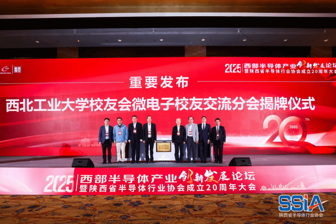 4月28日,在“2025西部半导体产业创新发展论坛暨陕西省半导体行业协会成立20周年大会”上,微电子校友交流分会揭牌仪式顺利举行,学校校友会秘书长杨铭、分会会长马炳和、副会长江喜平、罗义共同揭牌,郝跃院士、侯洵院士、西安电子科技大学微电子行业校友会会长张玉明、西安交通大学微电子行业校友会副会长欧新华上台见证。
